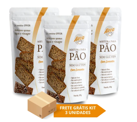 KIT de misturas prontas para preparar seu pão Aleca em casa. Mix completo: já contém ovos, farinhas, sementes, fermento e sal. Sem sujeira, sem bagunça: dispensa o uso eletrodomésticos. Acrescente apenas água e vinagre. O gostinho do pão Aleca em sua casa!